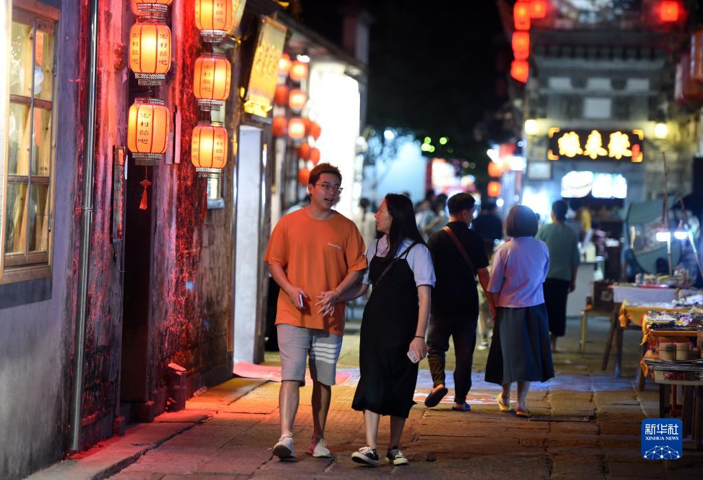 8月31日晚,游客在宏村游覽。新華社記者 周牧 攝