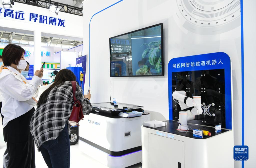 9月1日,在2022年服貿會首鋼園區,觀眾在參觀智能建造機器人。新華社記者 韓旭 攝