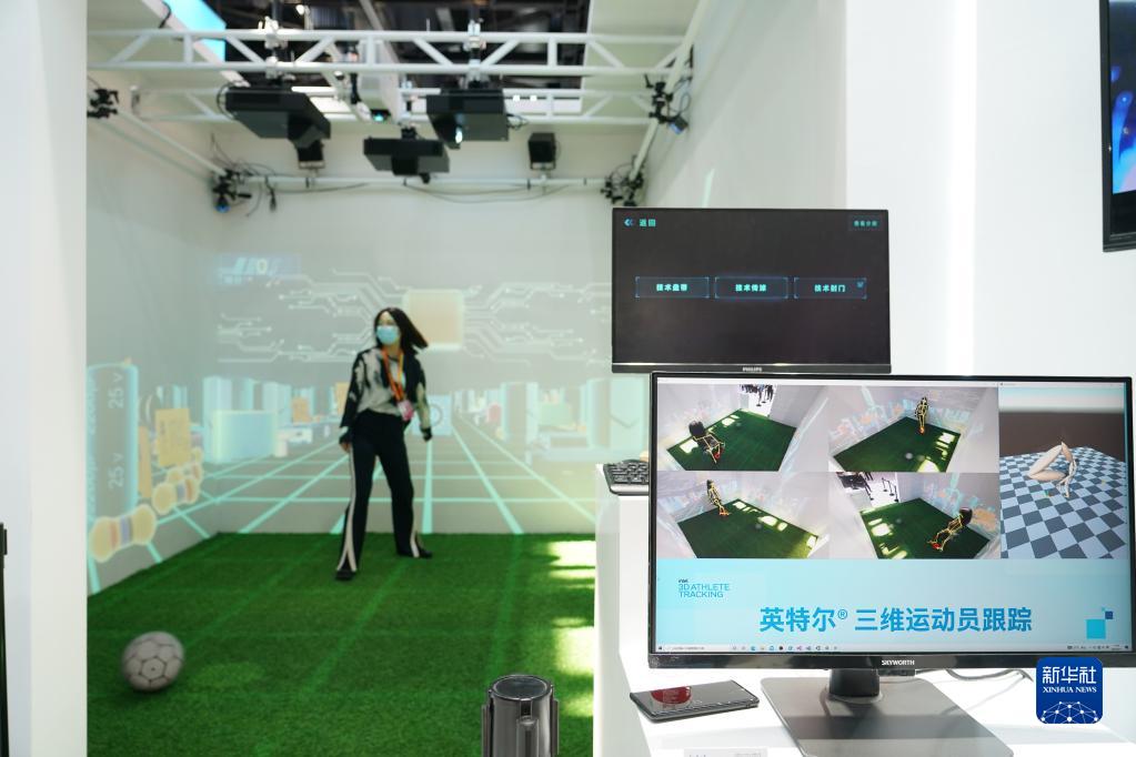 9月1日在國家會議中心拍攝的在2022年服貿會上展示的三維運動員跟蹤。新華社記者 任超 攝