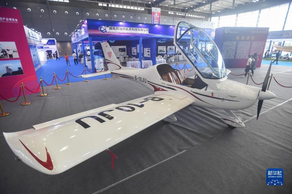 這是9月1日在湖南長沙國際會展中心拍攝的博覽會上的一架輕型運動飛機。