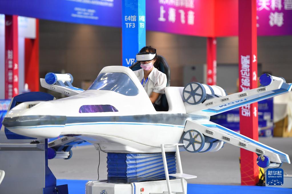 9月1日,在湖南長沙國際會展中心,參觀者在博覽會上進行VR航天航空體驗。