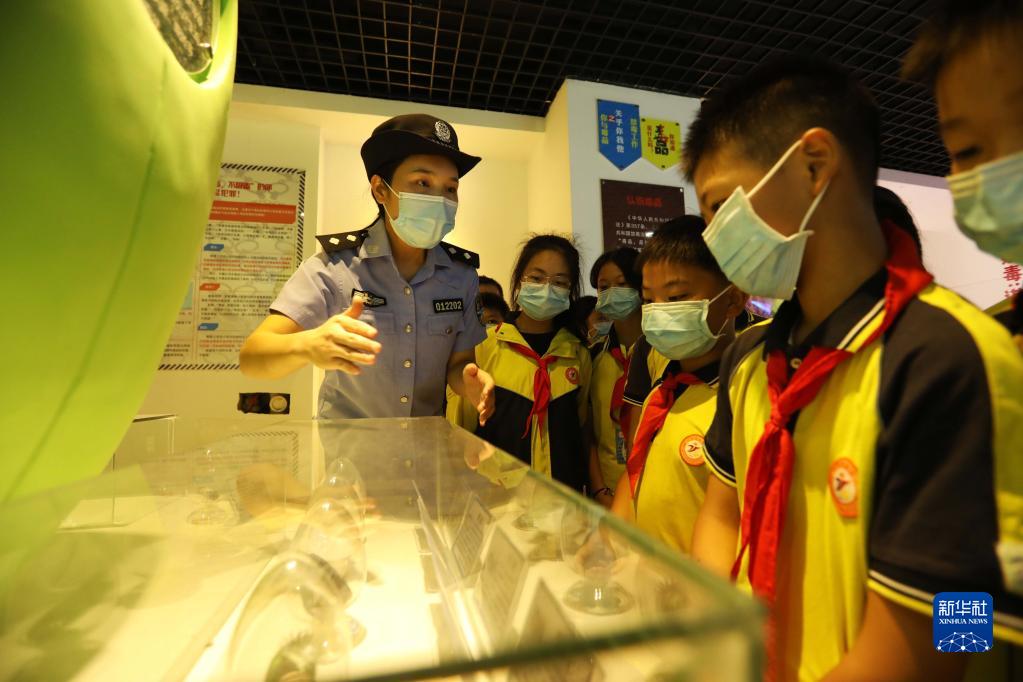 9月1日,在貴州省赤水市天臺學校,民警給學生講解新型毒品相關知識。