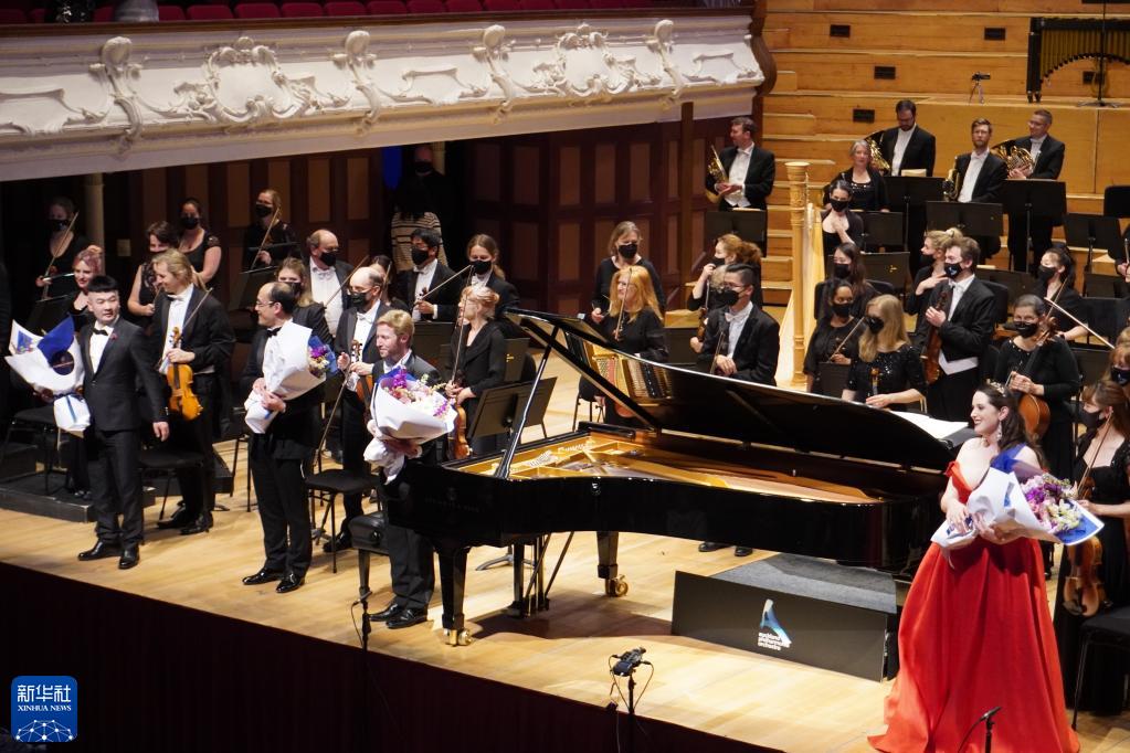 9月1日,在新西蘭奧克蘭市政廳,藝術家在“中華風韻”交響音樂會演出結束后謝幕。