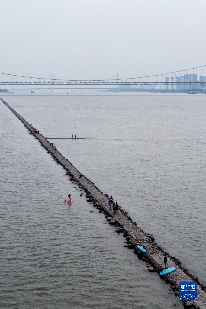 近日,長江武漢段水位持續降低,一條江心小道露出江面。截至9月1日20時,長江漢口站水位為14.67米,遠低于歷史同期平均水位。