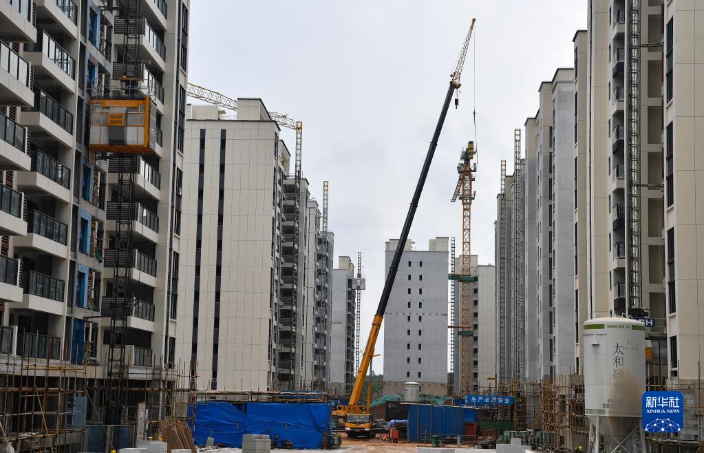 9月2日拍攝的??诮瓥|新區東寨新居一期項目施工現場。