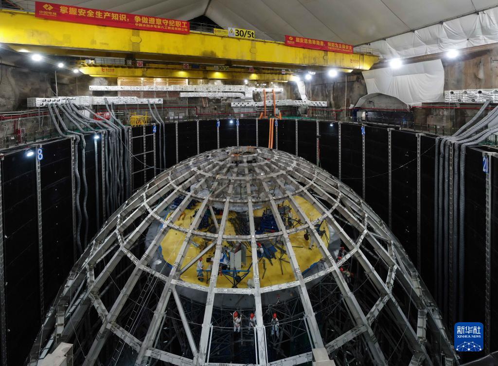 這是9月2日拍攝的位于地下700米的江門中微子實驗探測器施工現場(無人機照片)。新華社記者 鄧華 攝