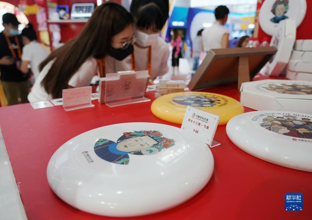 這是9月2日在服貿會文旅服務專題展區拍攝的以《同光十三絕》為設計靈感的文創飛盤。新華社記者 張晨霖 攝