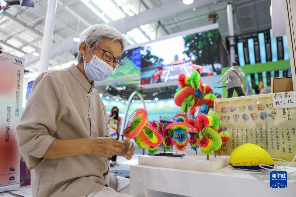9月2日,參展人員在服貿會文旅服務專題展區展示紙翻花。新華社記者 郝昭 攝