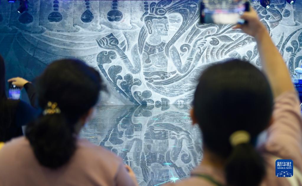 9月2日,在服貿會國家會議中心二期展館內,觀眾在河南展位參觀拍攝。新華社記者 魯鵬 攝