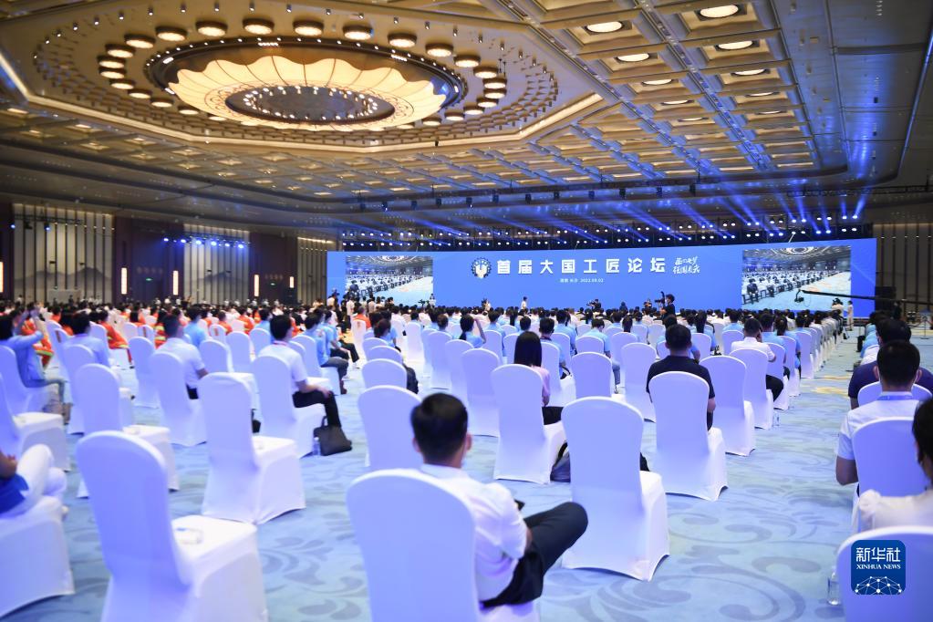 這是9月2日拍攝的首屆大國工匠論壇開幕式暨主旨演講現場。當日,首屆大國工匠論壇在湖南省長沙市舉行。此次論壇以“匠心逐夢·強國有我”為主題,為大國工匠和工匠人才展現風采、分享經驗、切磋技藝、提升素質搭建平臺。新華社記者 薛宇舸 攝