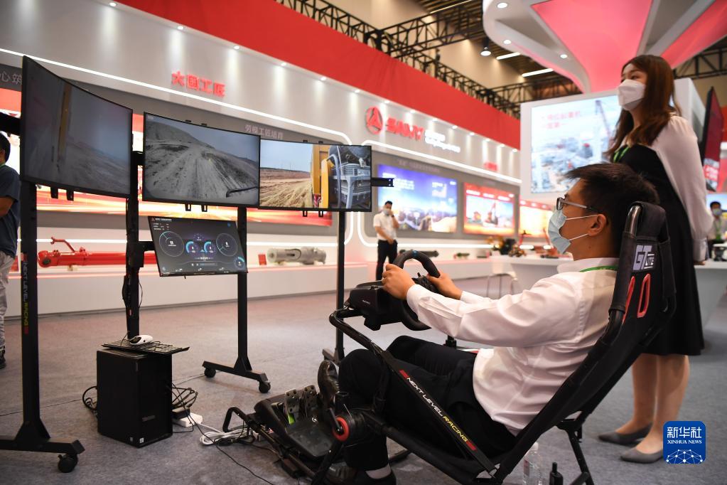 9月2日,參觀者在論壇期間舉辦的湖湘勞模工匠創新成果展上體驗遠程操控無人駕駛礦車。新華社記者 薛宇舸 攝
