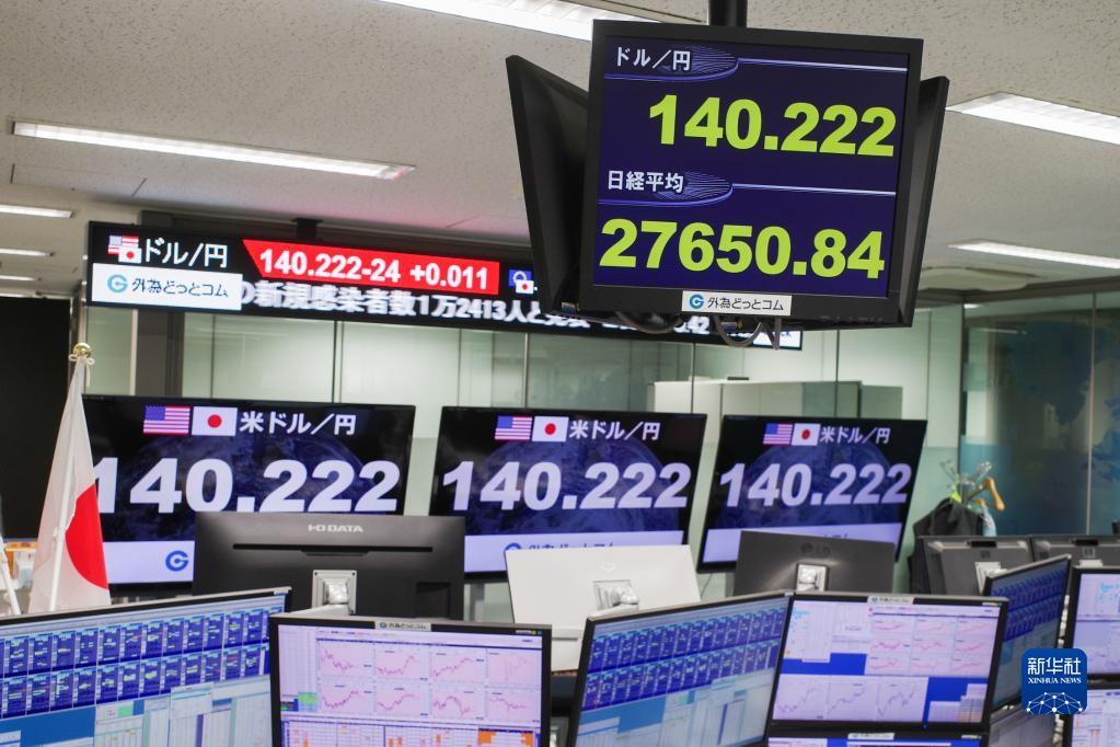 這是9月2日在日本東京拍攝的顯示日元對美元匯率信息的電子顯示屏。日元對美元匯率9月2日一度跌破140日元兌1美元,創24年來新低。新華社發(龔岫熙攝)
