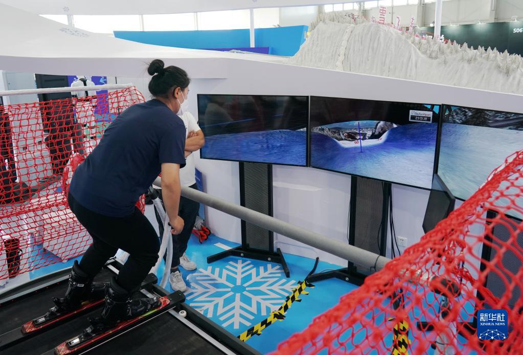 這是9月2日在服貿會體育服務展館內拍攝的一款模擬滑雪設備。新華社記者 張晨霖 攝