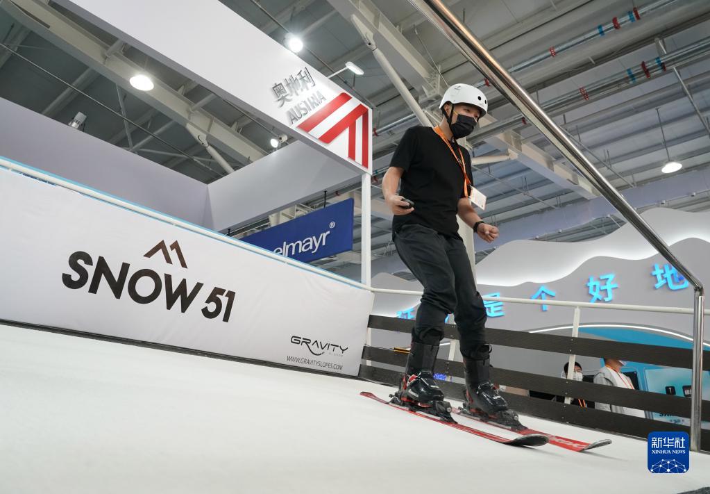 9月2日,在服貿會體育服務專題展區拍攝的高山滑雪模擬機。新華社記者 任超 攝