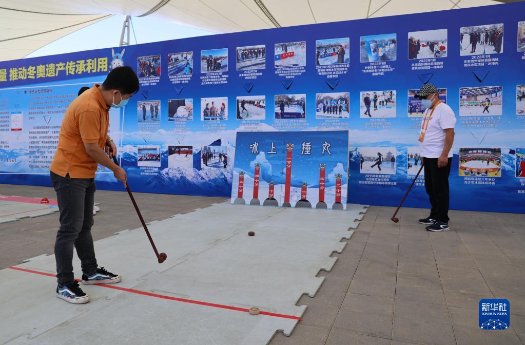 9月1日,一名男子在服貿會體育服務專題展區體驗冰上捶丸。新華社記者 戚曉毅 攝