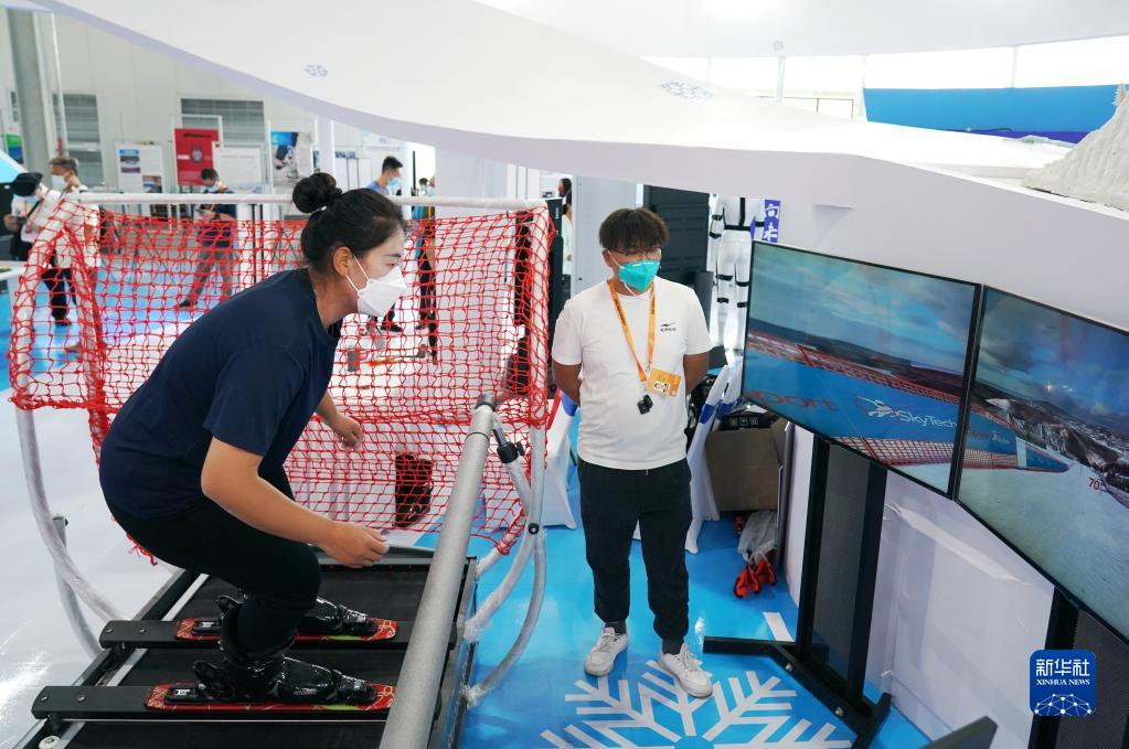 這是9月2日在體育服務專題展區內拍攝的一款模擬滑雪設備。