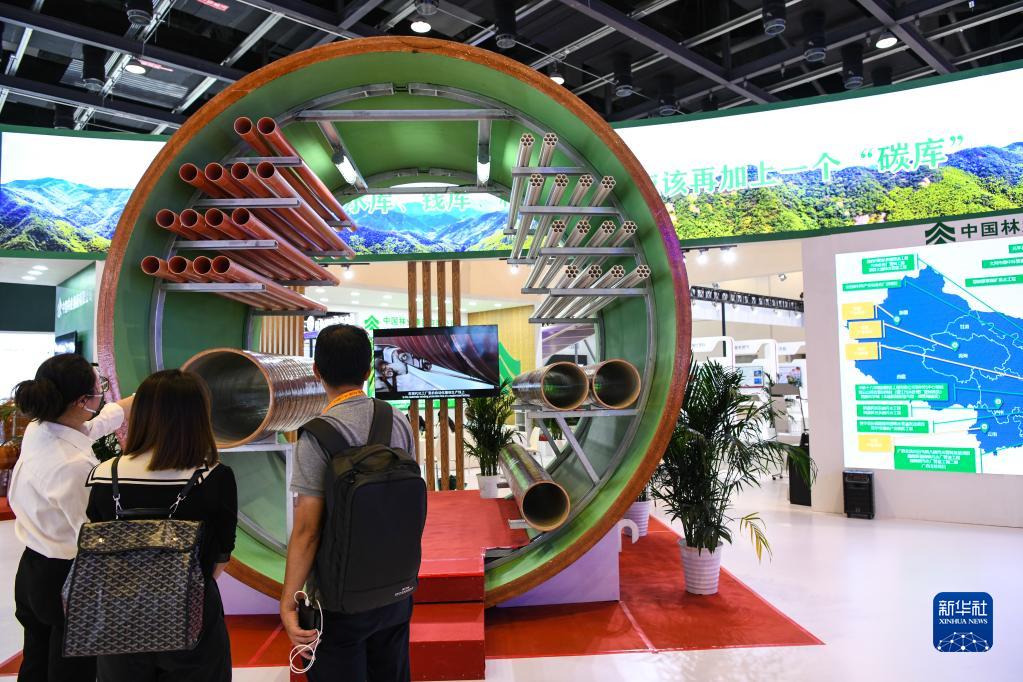9月2日,在環境服務專題展區,觀眾參觀竹纏繞復合材料管廊。