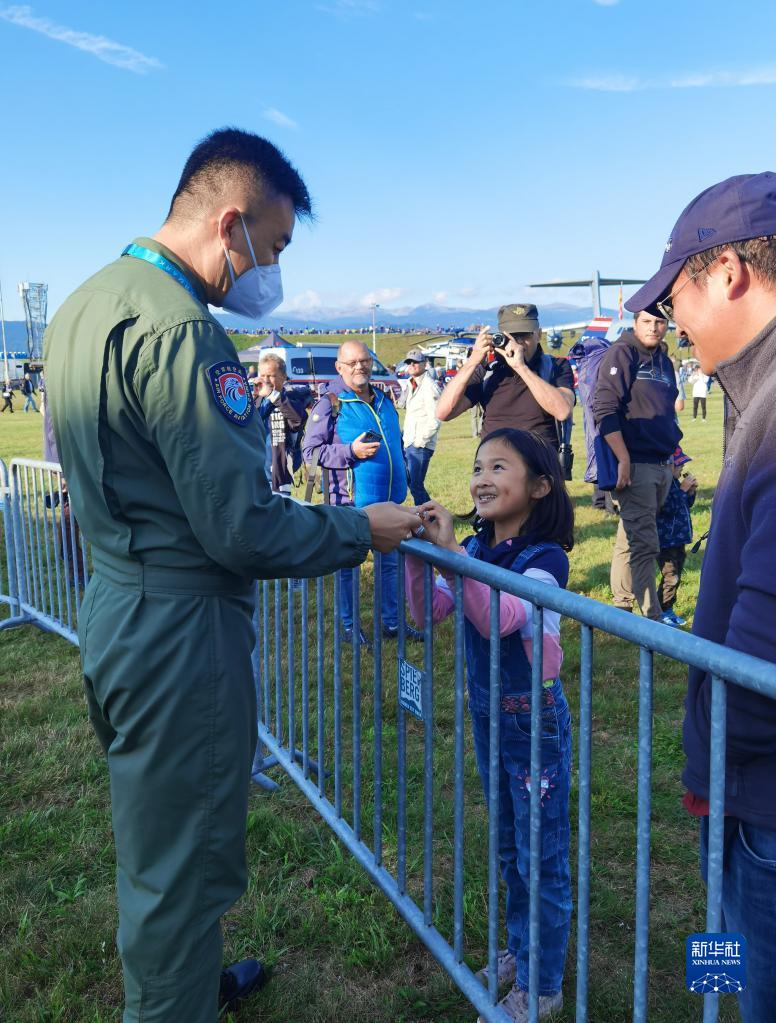 9月2日,在奧地利采爾特韋格機場,中國空軍運-20飛行員與航展觀眾交流。