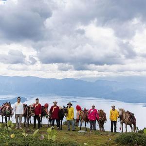 8名摩梭人,10匹騾馬。與傳統的貨運馬幫不同,“瀘沽湖馬幫”以載客騎游為主,開辟了“湖畔走馬”和“山野扎營”兩條騎游路線。馬幫帶領游客在山頂扎營過夜、野外用餐。人們躺在山巔帳篷里,俯瞰瀘沽湖全景、遠眺藍天白云和山巒,晚上數星星……