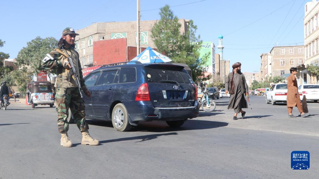 9月2日,在阿富汗赫拉特省發生爆炸的清真寺附近,安全人員設卡檢查。