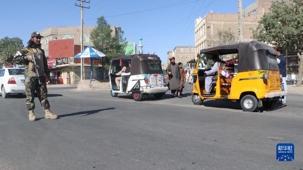 9月2日,在阿富汗赫拉特省發生爆炸的清真寺附近,安全人員設卡檢查。