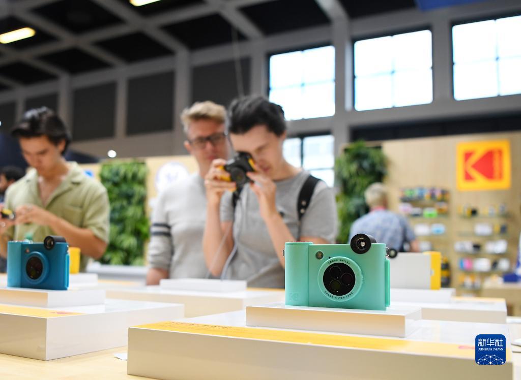 9月2日,在德國柏林國際消費電子展上,參觀者在柯達展區體驗一款相機。