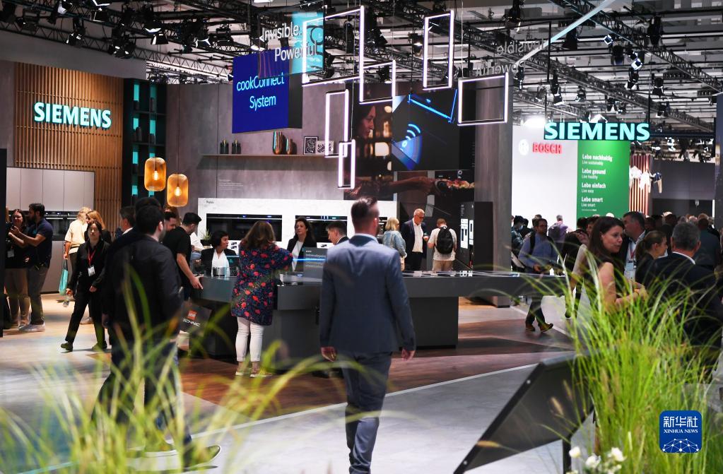 這是9月2日在德國柏林國際消費電子展上拍攝的西門子展區。