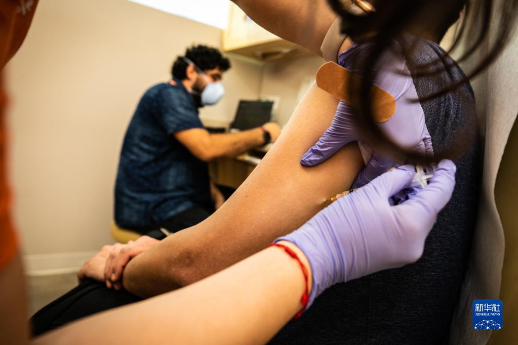 8月26日,在美國芝加哥,醫務人員為一名接種者注射猴痘疫苗。