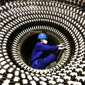 9月3日,在哈電集團哈爾濱電機廠有限責任公司的生產車間,工人在進行生產作業。