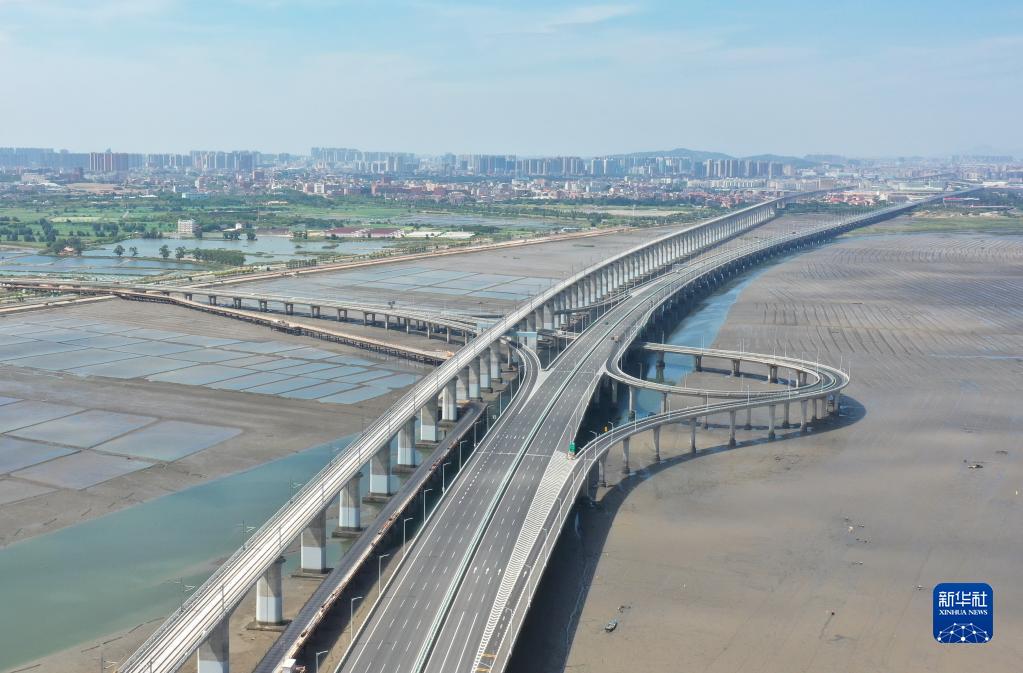 這是9月2日拍攝的新建福廈鐵路泉州灣跨海大橋(無人機照片)。