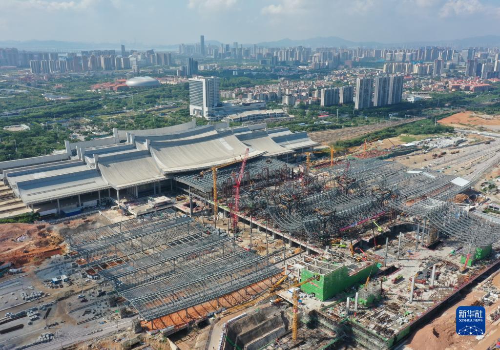 新建福廈鐵路廈門北站施工現場(8月30日攝,無人機照片)。