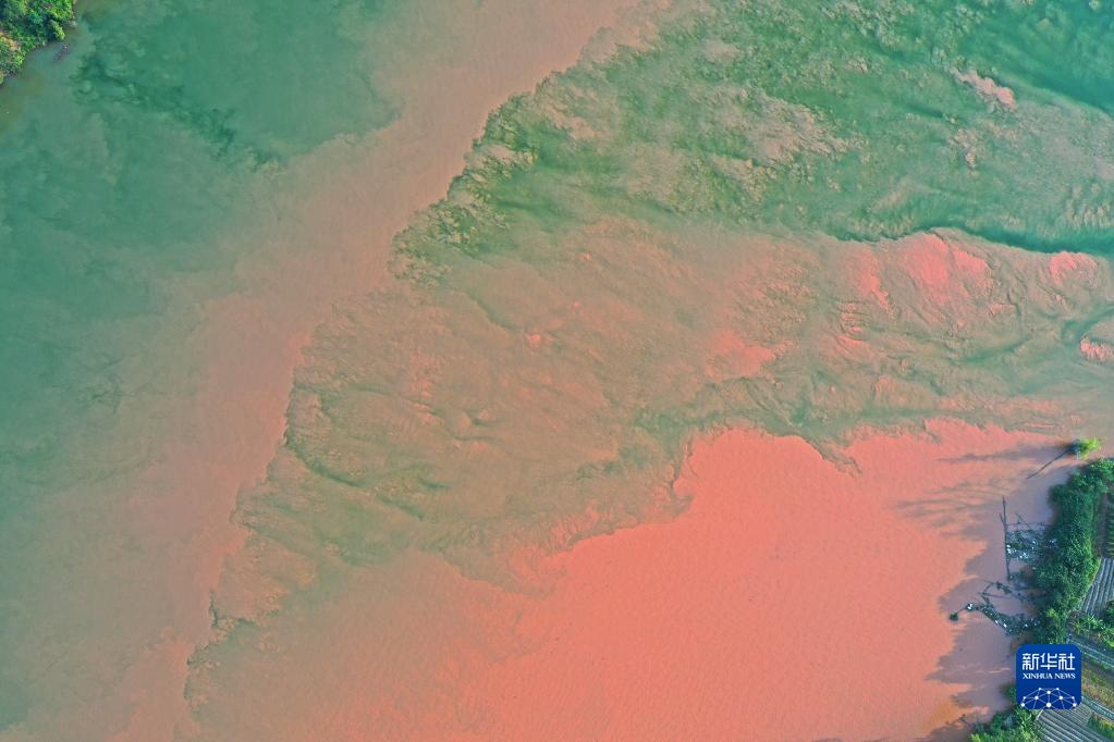 廣西南寧市江南區江西鎮三江口水域,左江與右江水在交匯處清濁交融(9月3日攝,無人機照片)。