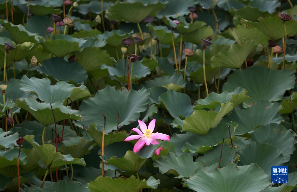 8月27日在江蘇省揚州市邗江區竹西公園里拍攝的雨后荷花。