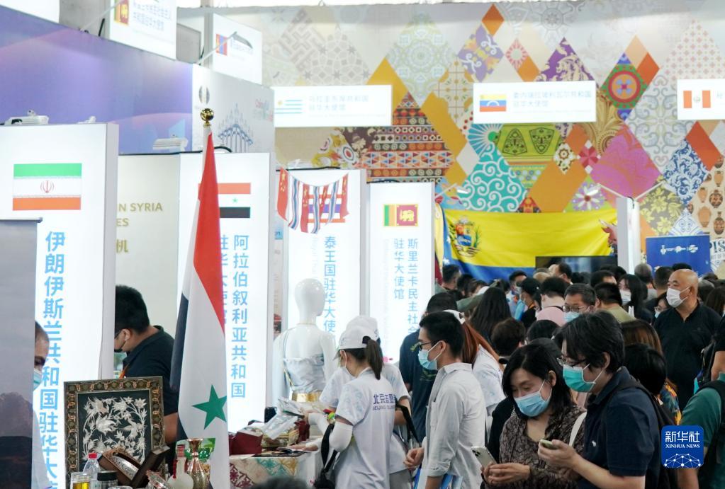 9月3日,參觀者在服貿會首鋼園區文旅服務專題展的“一帶一路”沿線國家特色文化展示活動上參觀。