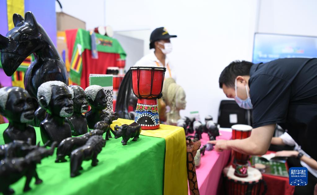 9月4日,參觀者在首鋼園區津巴布韋展臺了解特色產品。