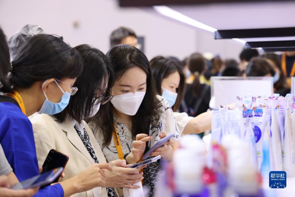 9月3日,人們在服貿會國家會議中心展館國別展區日本展臺瀏覽產品。