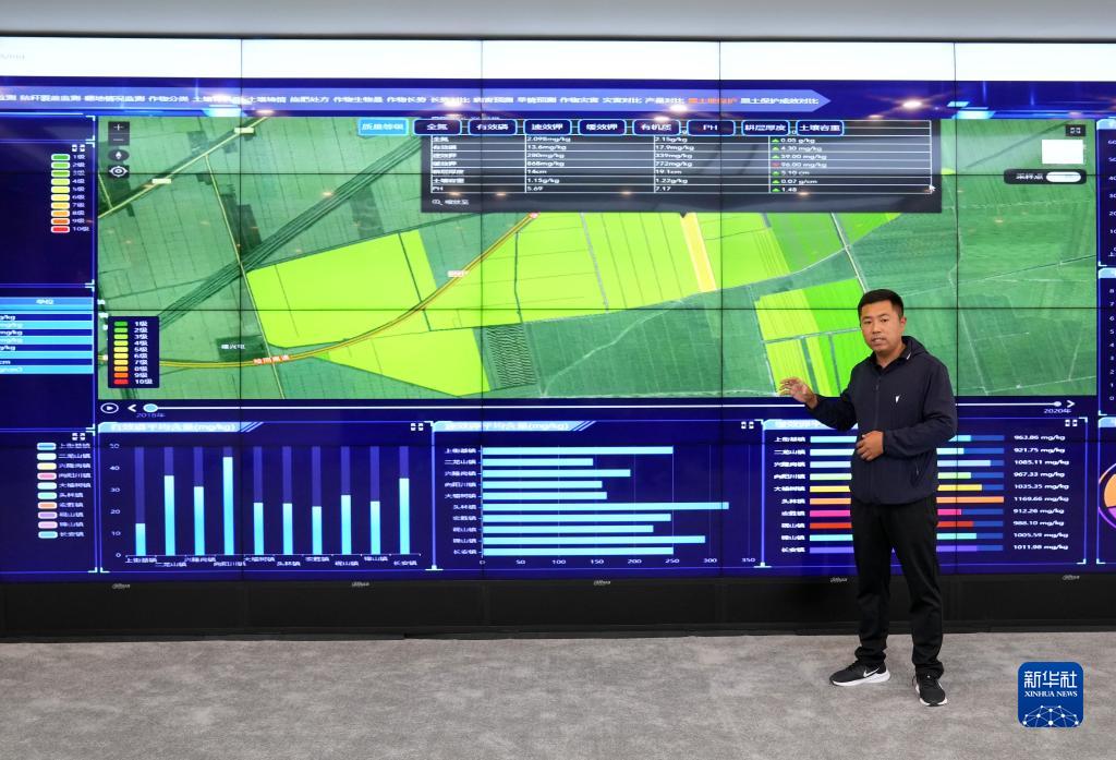 9月2日,在位于富錦市萬畝水稻科技示范園內的富錦市現代農業信息服務中心,工作人員在介紹水稻種植的整體情況。