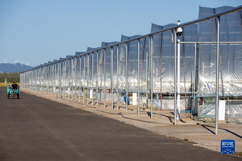 9月2日,在富錦市萬畝水稻科技示范園,工作人員在巡查農業棚室。