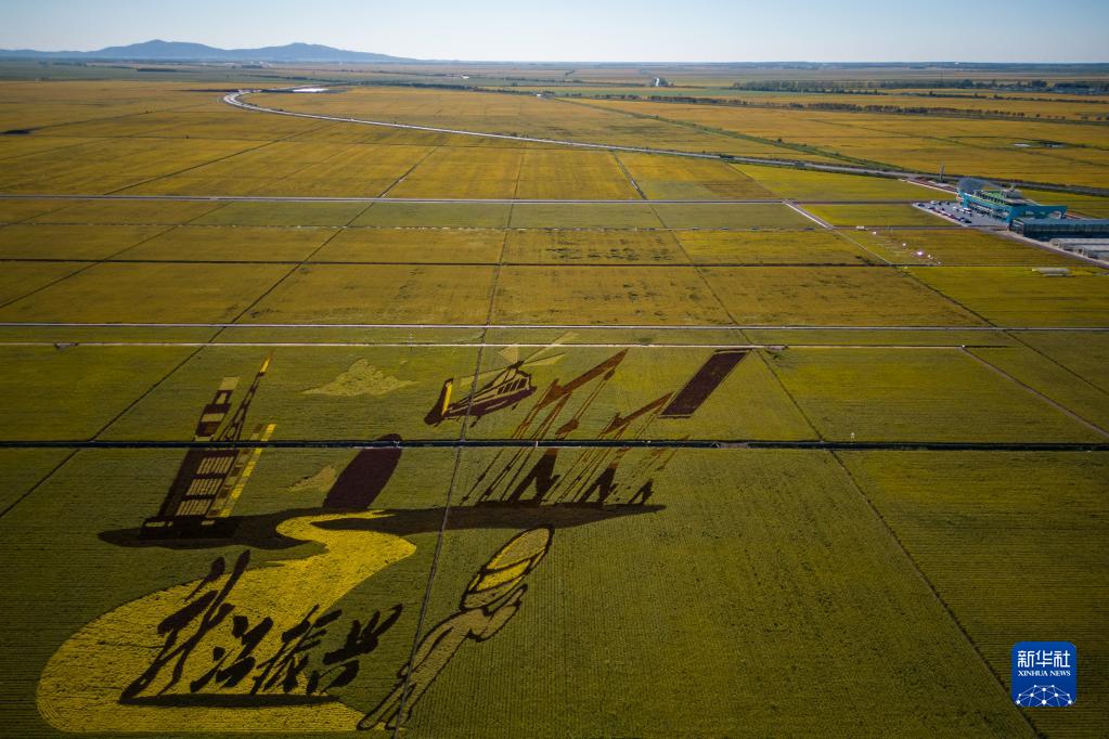 這是9月2日拍攝的富錦市萬畝水稻科技示范園里的稻田畫(無人機照片)。