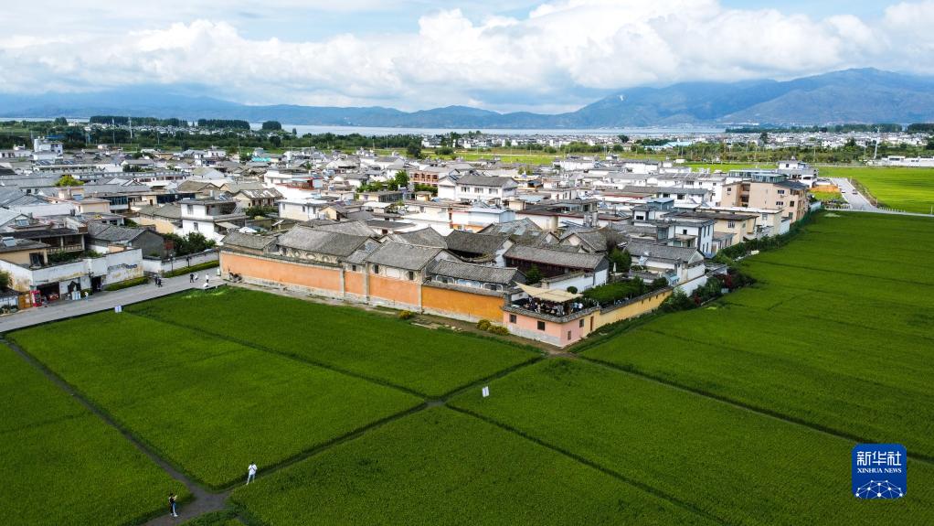 這是8月27日拍攝的云南省喜洲古鎮,近處為喜林苑(無人機照片)。