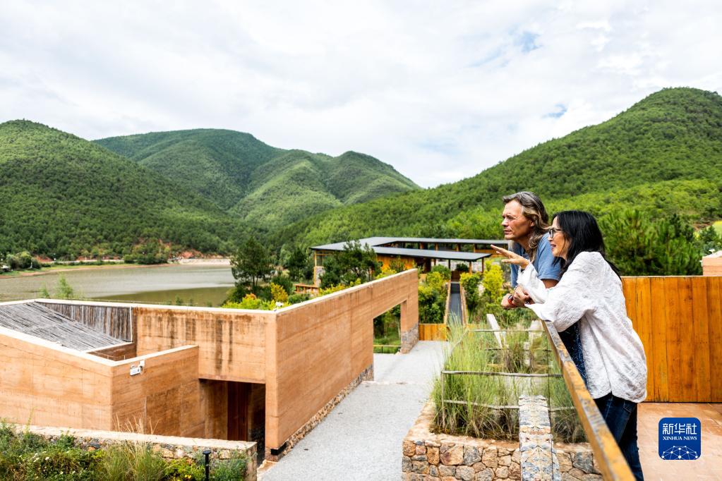 8月31日,林登和妻子瑾妮在喜林苑沙溪店討論工作。