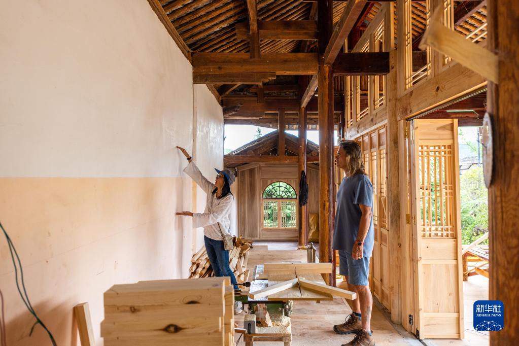 8月31日,林登和妻子瑾妮在沙溪鎮石龍村討論鄉村圖書館的設計。