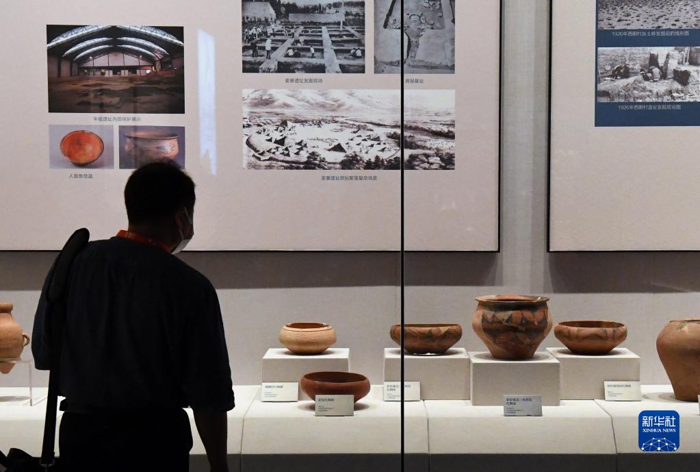 9月4日,參觀者在“繁星盈天——中國百年百大考古發現展”上觀看展品。
