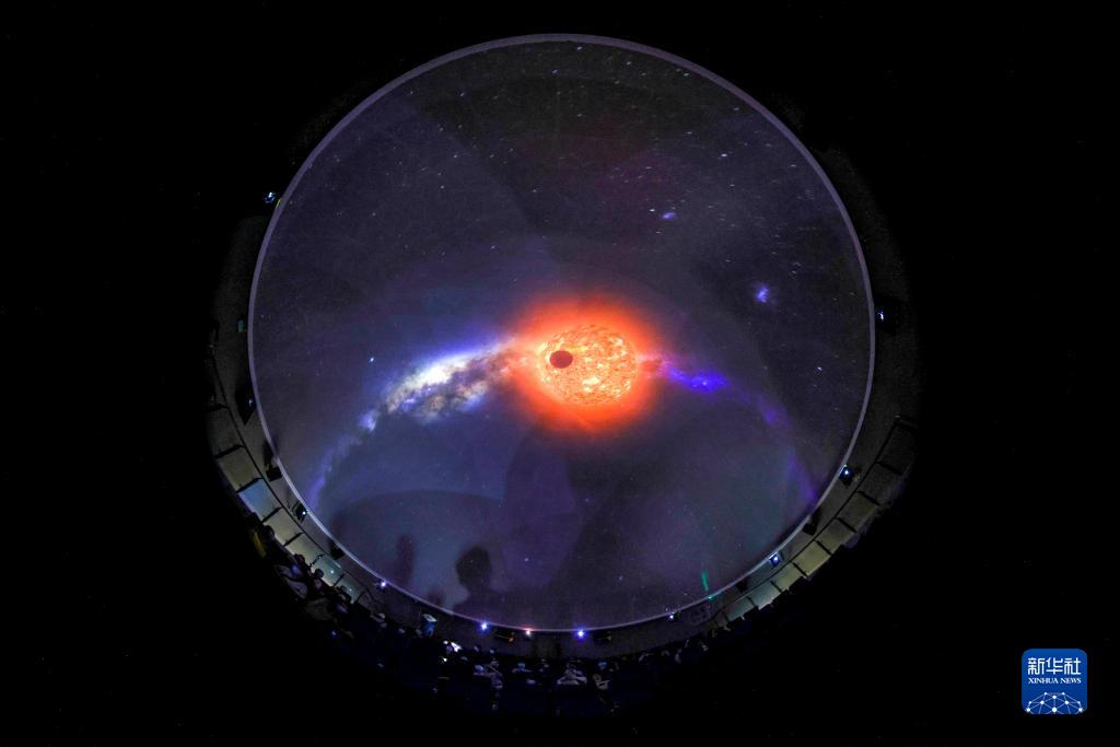 2022年7月20日,參觀者在天文體驗館內觀看天文科普電影。