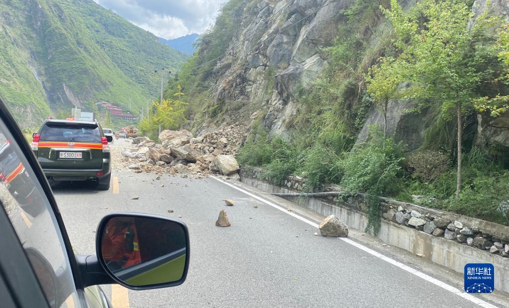 這是9月5日四川省森林消防總隊甘孜支隊在前往瀘定縣的路上發現的塌方情況。