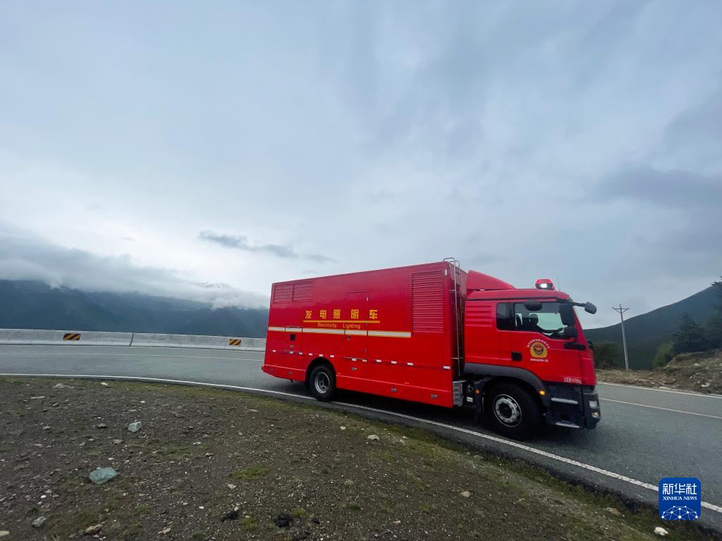 9月5日,救援車輛行駛在四川省甘孜州通往瀘定縣磨西鎮的路上。