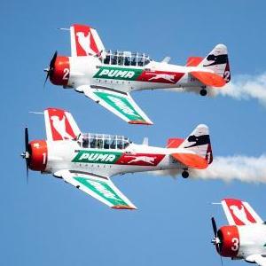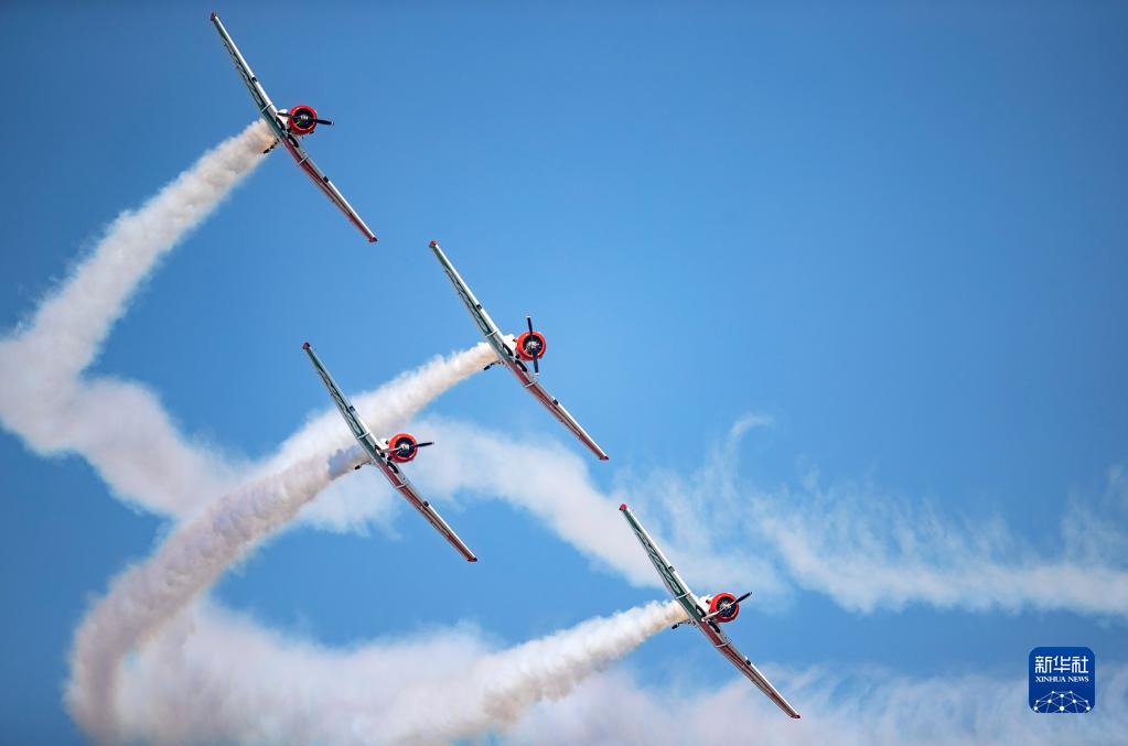 這是9月4日在南非約翰內斯堡拍攝的蘭德航展上的飛行表演。