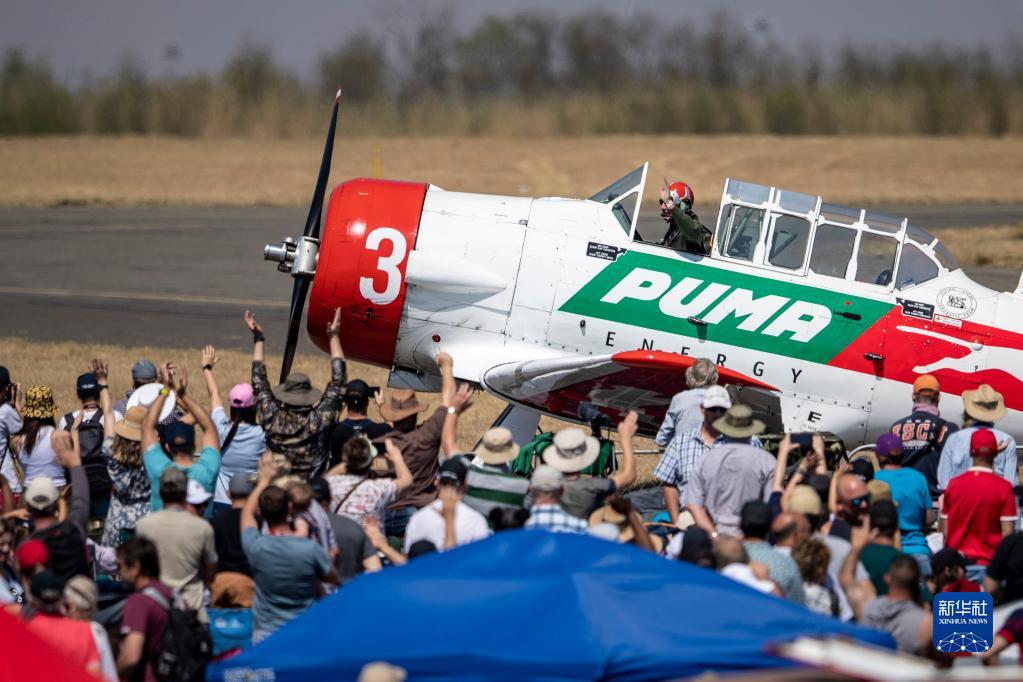 9月4日,在南非約翰內斯堡,參加蘭德航展的飛行員向觀眾致意。