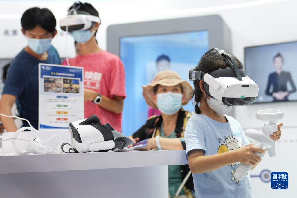 9月4日,在服貿會首鋼園區文旅服務專題展,小朋友在進行VR體驗。