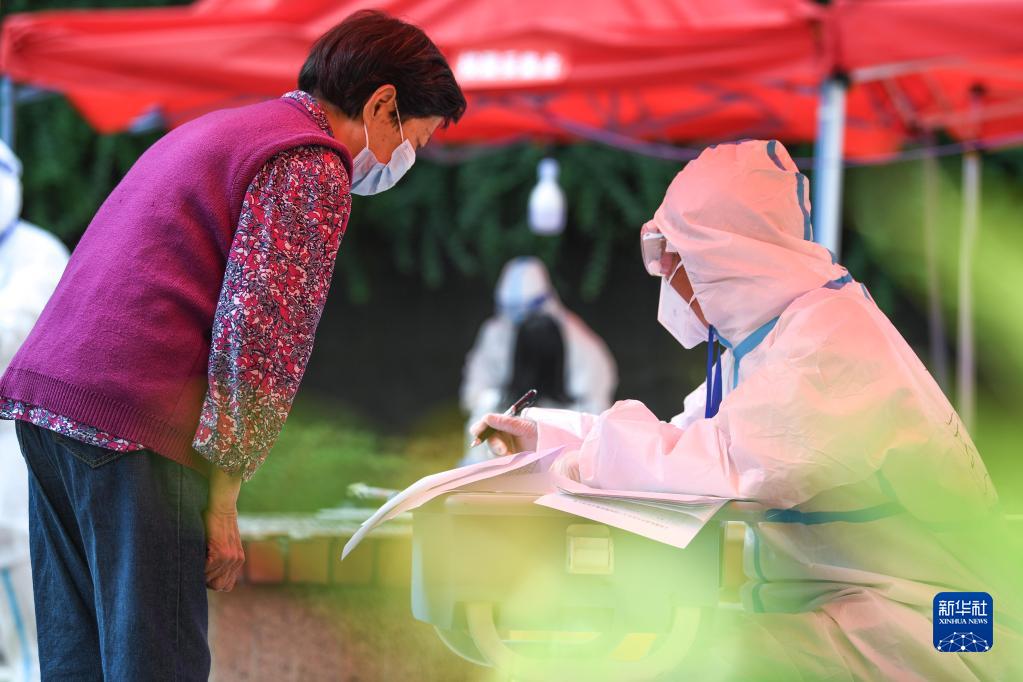 9月5日,醫護人員在貴陽市云巖區大營路街道中天花園社區為市民做核酸檢測信息登記。